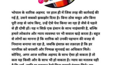 भोपाल। फेसबुक और सोशल मीडिया प्लेटफ़ॉर्म्स पर इन दिनों कुछ लोग लगातार सारिक अहमद के समर्थन में अभियान चला रहे हैं। इन पोस्ट्स में यह दावा किया जा रहा है...