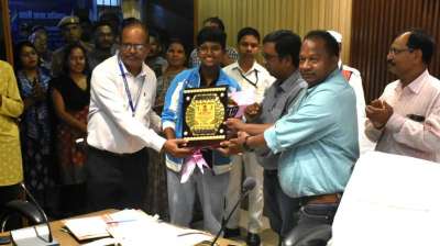 नेशनल फुटबॉल खिलाड़ी किरण पिस्दा का जिला प्रशासन बालोद ने किया सम्मानित