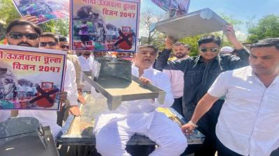 भोपाल में कांग्रेस ने किया अनोखा विरोध, महिलाओं को बांटे लकड़ी के चूल्हे