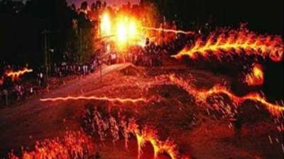 इंदौर के समीप देपालपुर में खेला गया हिंगोट युद्ध, एक-दूसरे पर फेंके जलते हुए तीर