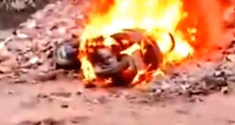कानपुर में स्कूटी स्टार्ट न होने पर युवक ने गुस्से में अपनी स्कूटी को किया आग के हवाले
