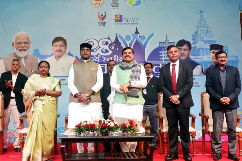 भोपाल: मुख्यमंत्री डॉ. मोहन यादव आज भोपाल में 28वें राज्य स्तरीय युवा उत्सव कार्यक्रम के समापन समारोह में शामिल हुए। इस अवसर पर खेल एवं युवा कल्याण मंत्री विश्वास सारंग भी मौजूद थे। टीटी नगर स्टेडियम में आयोजित कार्यक्रम में मुख्यमंत्री ने 'पार्थ' (पुलिस सेना भर्ती प्रशिक्षण एवं हुनर) योजना और मध्य प्रदेश युवा प्रेरक अभियान (एमपीवाईपी) का भी शुभारंभ किया। इस अवसर पर उन्होंने कहा कि अब मध्य प्रदेश के विश्वविद्यालयों में रोजगारपरक पाठ्यक्रम पढ़ाने पर अधिक ध्यान दिया जाएगा।