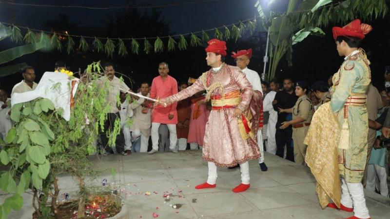 ग्वालियर: सिंधिया राजघराने में अनुष्ठान और विशेष पूजा-पाठ का काफी महत्व है। यहां सदियों से चली आ रही परंपराओं और रीति-रिवाजों का पालन किया जाता है। ऐसा ही मौका था पवित्र शमी पूजन का , जिसमें जैसे ही महाराज ने तलवार से शमी को स्पर्श किया तो सोना लूटने के लिए लोगों में होड़ मच जाती है। सिंधिया राजपरिवार की परंपराओं का नज़ारा एक बार फिर ग्वालियर में देखने को मिला। दशहरा मैदान में शनिवार को केंद्रीय मंत्री ज्योतिरादित्य सिंधिया ने अपने पुत्र महाआर्यमन सिंधिया के साथ पवित्र 'शमी' पूजन कर परंपरा का निर्वहन किया। इस मौके पर सिंधिया रियासत के दरबारी भी अपनी पारंपरिक राजसी वेशभूषा में मौजूद रहे।