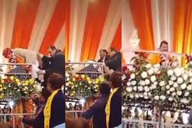 लखनऊ|भाजपा के पूर्व सांसद बृजभूषण शरण सिंह मंच पर अचानक मुंह के बल गिर गए और गुलाटी खा गए। इस दौरान पास में खड़े सुरक्षाकर्मी उन्हें बचाने की कोशिश करते रह गए लेकिन उन्हें गिरने से रोक नहीं पाए। थोड़ी देर के लिए सुरक्षाकर्मियों के साथ-साथ हर कोई हक्का-बक्का रह गया लेकिन गिरने के तुरंत बाद बृजभूषण शरण सिंह उठे और मुस्कुराने लगे। उन्हें मुस्कुराता देख सबने राहत की सांस ली। अब इस घटना का एक वीडियो सोशल मीडिया में तेजी से वायरल हो रहा है। वीडियो आठ जनवरी का बताया जा रहा है। इस दिन बृजभूषण शरण सिंह का 69 वां जन्मदिन भी था।मौका गोंडा के नंदनी नगर में आयोजित आठ दिवसीय राष्ट्र कथा महोत्सव के समापन समारोह का था। इसमें संत ऋतेश्वर महाराज को कथा के लिए आमंत्रित किया गया था। आठ जनवरी को कथा का समापन भी था और बृजभूषण शरण सिंह का जन्मदिन भी। सोशल मीडिया पर वायरल हो रहे वीडियो में मंच पर चढ़ते समय बृजभूषण शरण सिंह का संतुलन बिगड़ गया। सुरक्षा कर्मियों ने उन्हें संभालने का प्रयास किया लेकिन बृजभूषण गुलाटी खाते हुए मुंह के बल गिर जाते हैं। वह जिस तरह से गिरे उसे देखकर वहां मौजूद हर कोई हक्का बक्का रह गया।