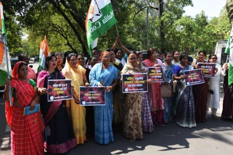 भोपाल: महिलाओं के खिलाफ बढ़ते अपराधों के खिलाफ महिला कांग्रेस का विरोध प्रदर्शन