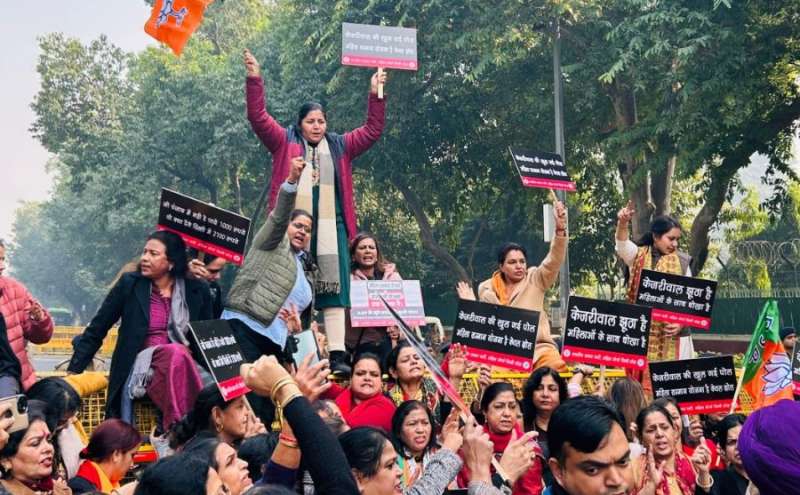 बीजेपी महिला मोर्चा ने केजरीवाल के घर के बाहर किया प्रदर्शन