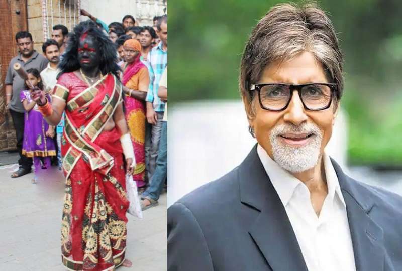 अमिताभ बच्चन के घर के बाहर भीड़ में चेहरे पर काला रंग पोते एक महिला नजर आई। इस महिला ने अपना पूरा चेहरा काले रंग से पोता हुआ है। मांग में सिंदूर, बड़ा सा टीका और आंखों के ऊपर लाल रंग से ही भरी हुई आईशेडो लगाए यह महिला अतरंगी अंदाज में बिग बी से मिलने आईं। इनके एक हाथ में प्लास्टर, तो दूसरे में आरी है। वहीं, चेहरे के हावभाव गुस्से से भरे हुए नजर आ रहे हैं, जैसे वह किसी बात की नाराजगी जाहिर करने आई हों।