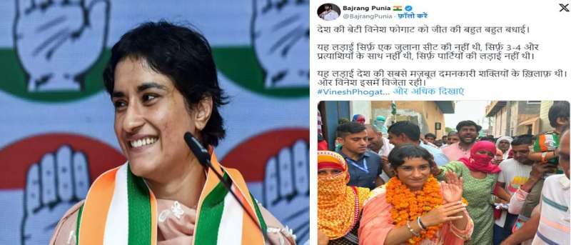 विनेश फोगाट की विधानसभा चुनाव जीत, बजरंग पुनिया ने किया सेलिब्रेट