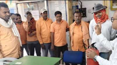 कलमीटार रेलवे स्टेशन में रेलकर्मियों को दिया गया अग्निशमन यंत्र के प्रयोग का प्रशिक्षण