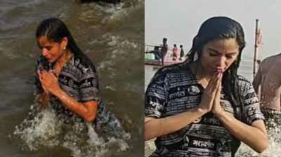 मौनी अमावस्या के दिन पूनम पांडे ने लगाई संगम में डुबकी
