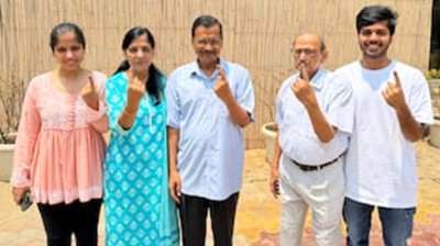 दिल्ली के सीएम अरविंद केजरीवाल ने परिवार के साथ किया मतदान