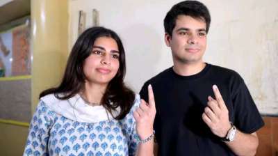 प्रियंका गांधी के बेटे और बेटी ने लाइन में लगकर किया मतदान